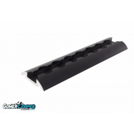 Riel de amarre color negro para atornillar en el suelo o la pared, de diseño semicircular.