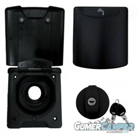 Bocana de color negro con tapa magnética y llaves para salida de aguas limpias.