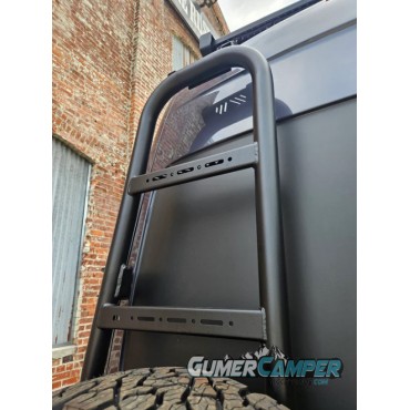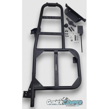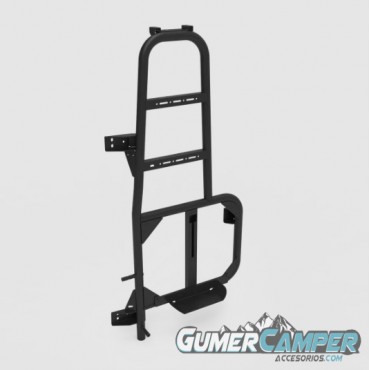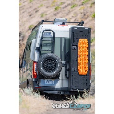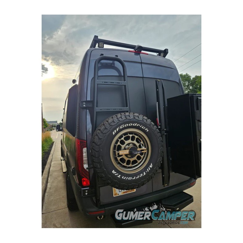 Dale un toque OFFROAD a la vez que aprovechas espacio interior en tu camper con este soporte de rueda con escalera para MAN