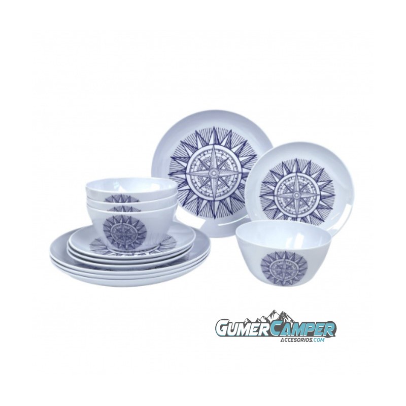 Vajilla de Melamina de 12 piezas para 4 personas modelo "rosa de los vientos"