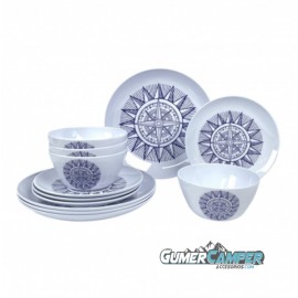 Vajilla de Melamina de 12 piezas para 4 personas modelo "rosa de los vientos"