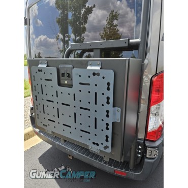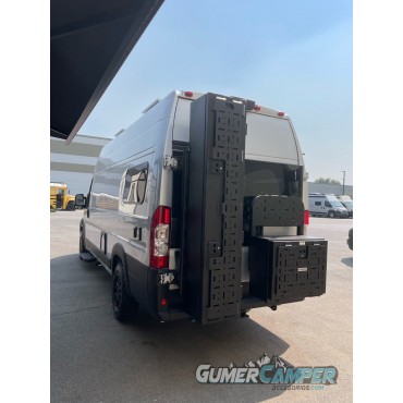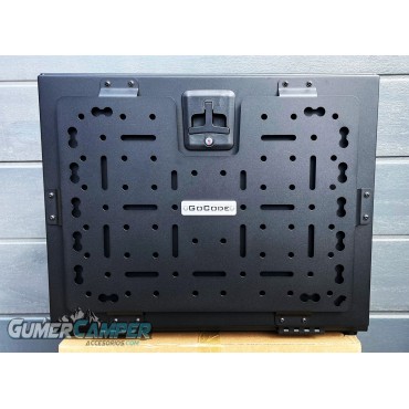 La puerta de este baul trasero puede usarse como mesa exterior una vez abierta, con capacidad de carga de hasta 20 kilos.