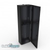 Cerradura de casete con palanca de cierre, bisagras reforzadas y sistema de drenaje.